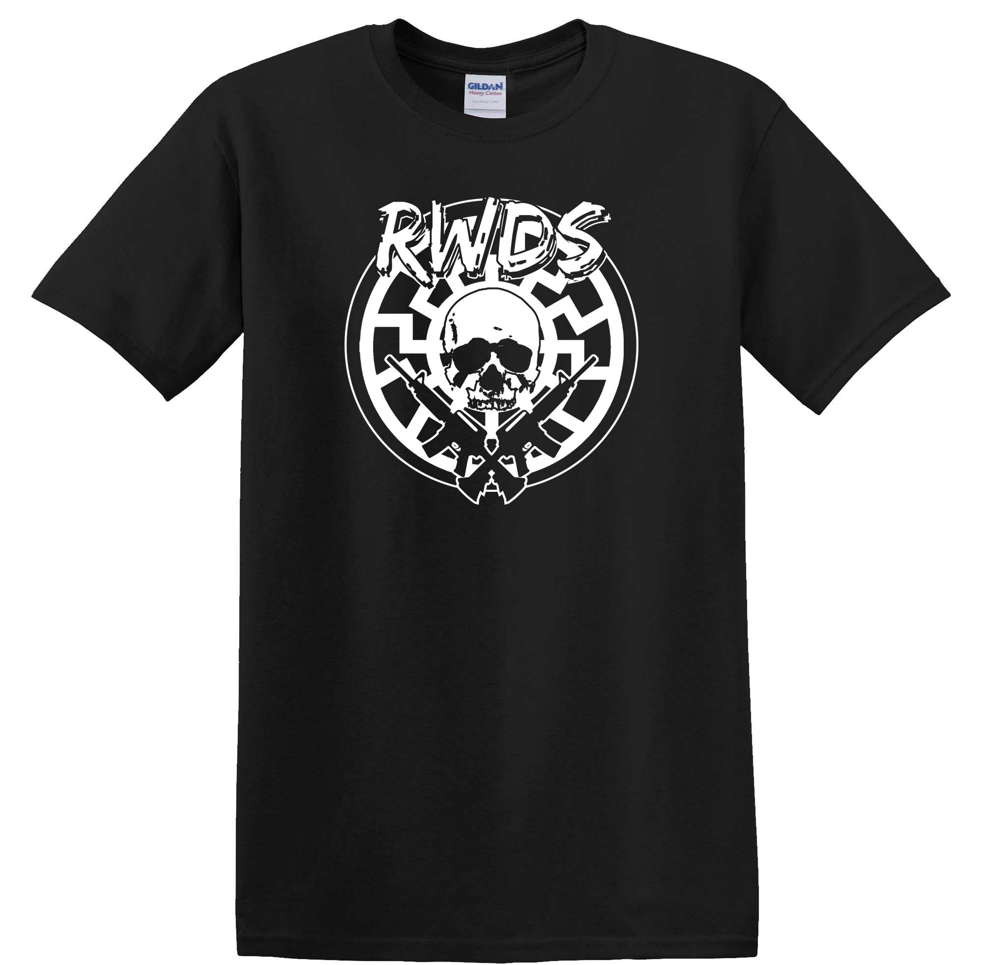 This t-shirt is black with white environmentally safe screen print.